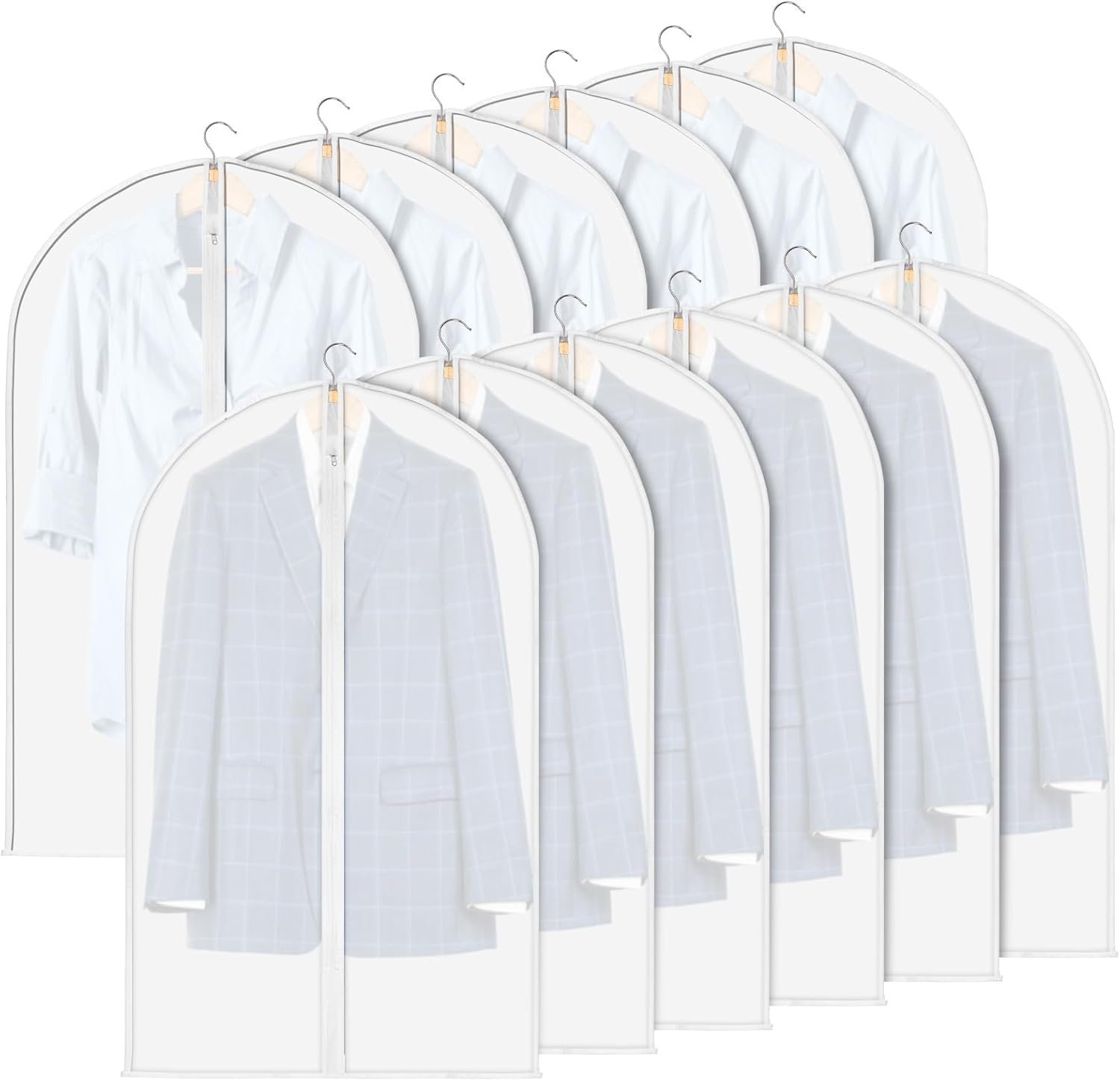 12 Pack Garment Bags for Hanging Clothes, Zippered Suit Bags for Travel, Translucent Clothing Covers (23” x 39”)