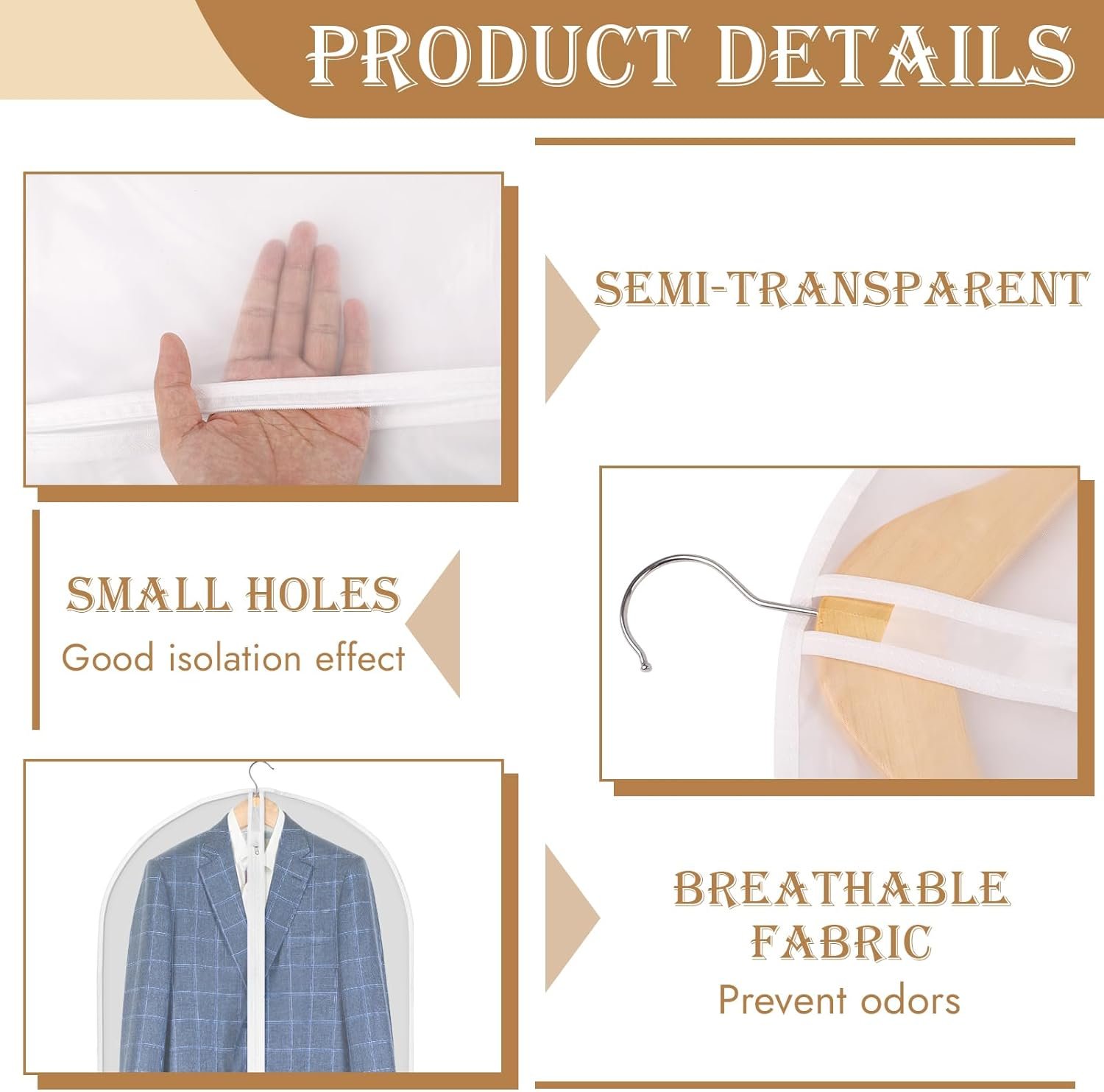 Spacious for Various Clothing: Measuring 23 x 39 inches, these garment bags can easily accommodate suits, jackets, coats, and more, making them ideal for different wardrobe needs