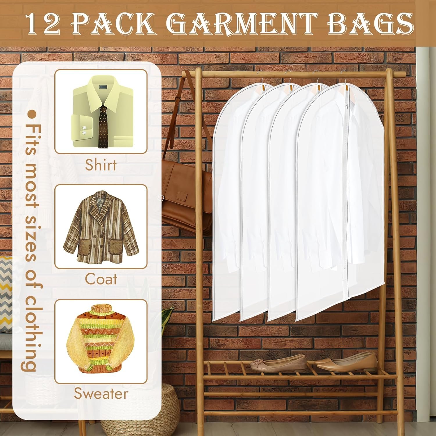 12-Pack for Versatile Use: This set includes 12 garment bags, providing ample storage for your clothing, perfect for home organization, travel, and business trips