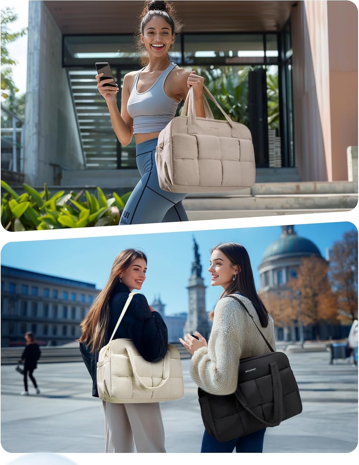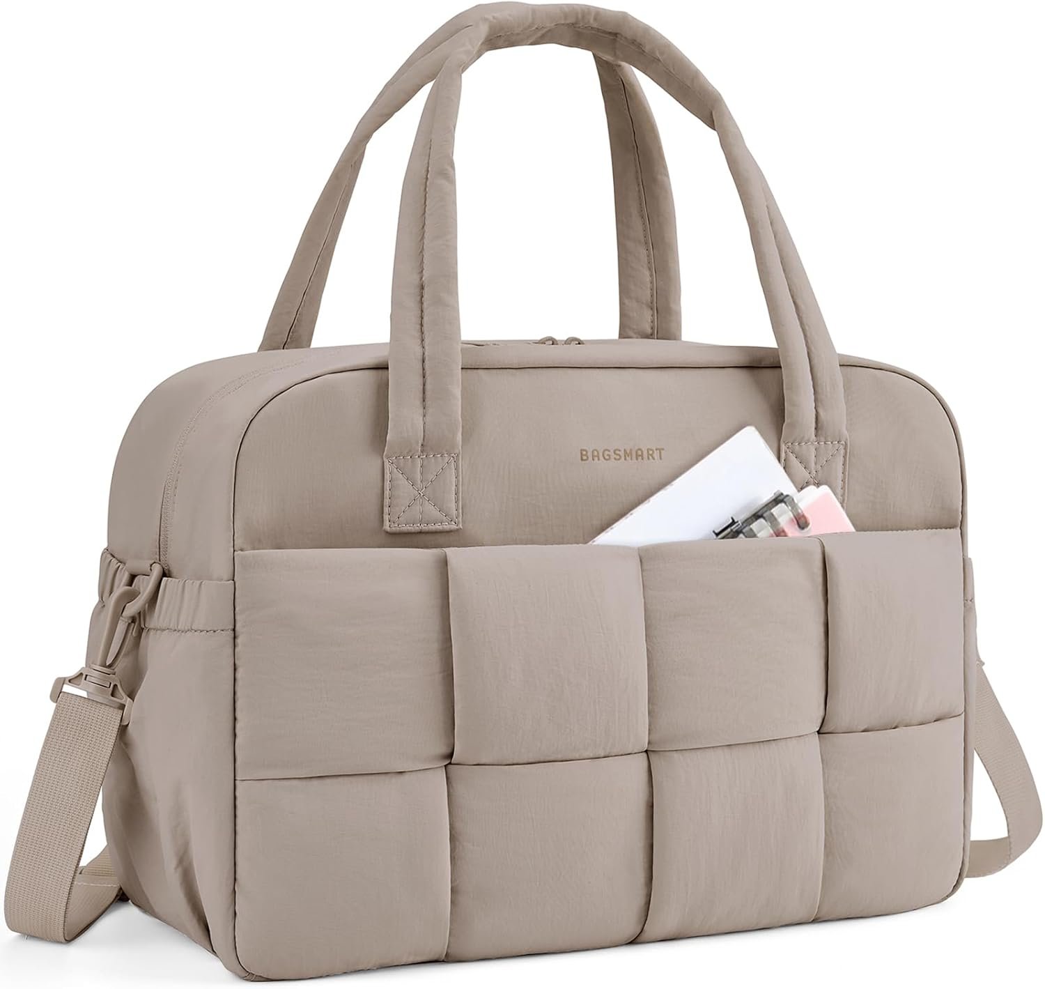BAGSMART Gym Bag for Women, 29L Puffer Travel Duffle Bag for Travel with Laptop Compartment, Weekender Bags for Women, Carry On Duffel Bag Personal Item Bag, Camel
