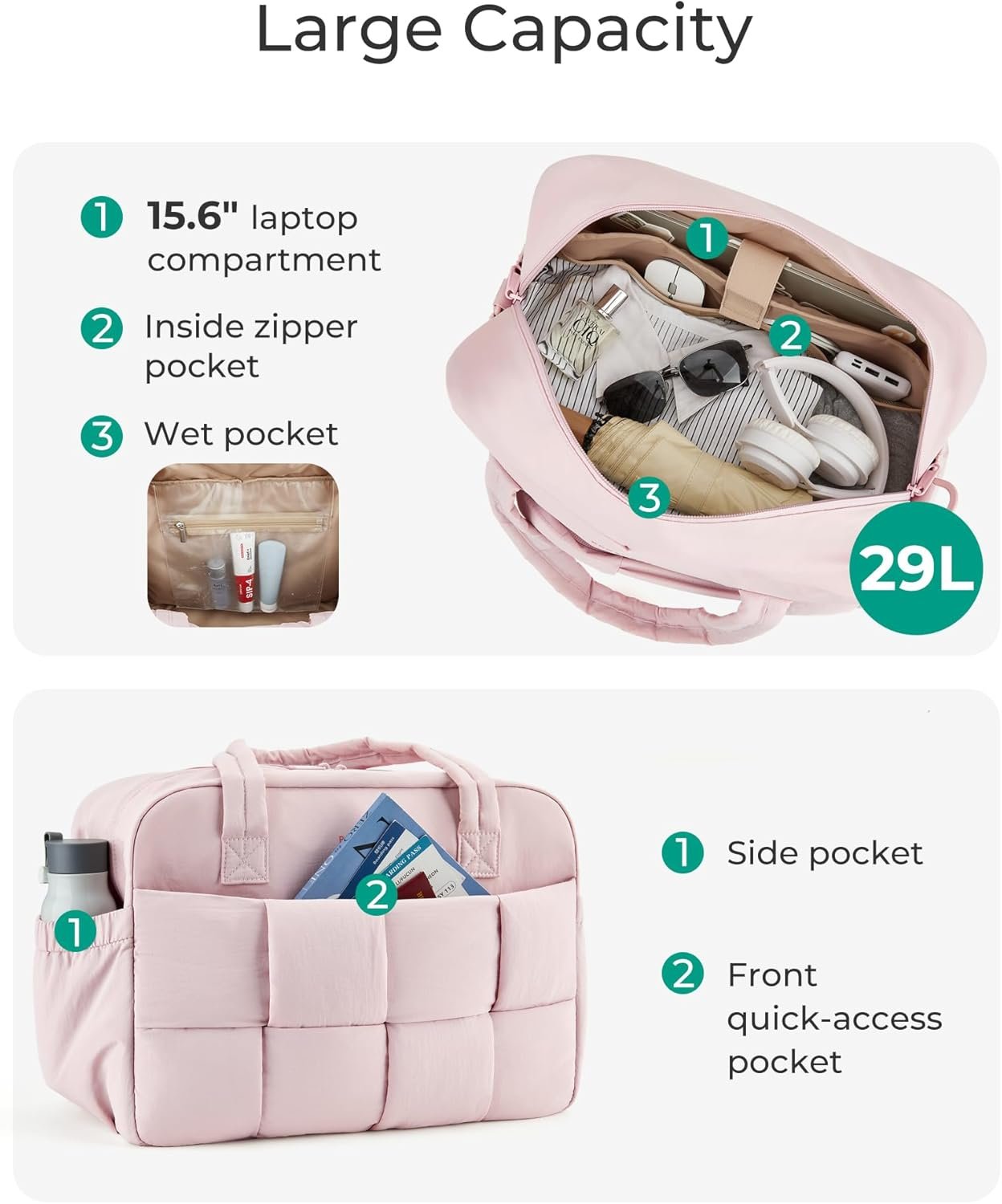 Easy to Carry: Equipped with an adjustable shoulder strap, this women’s travel bag can be worn as a crossbody, shoulder bag, or carried by hand. The detachable strap offers added versatility for any occasion.
