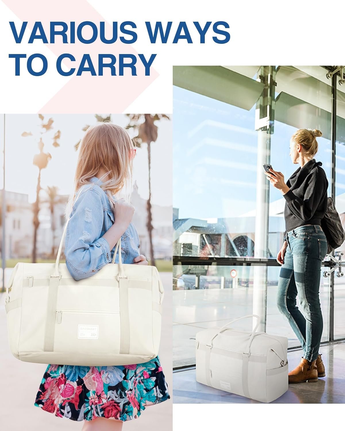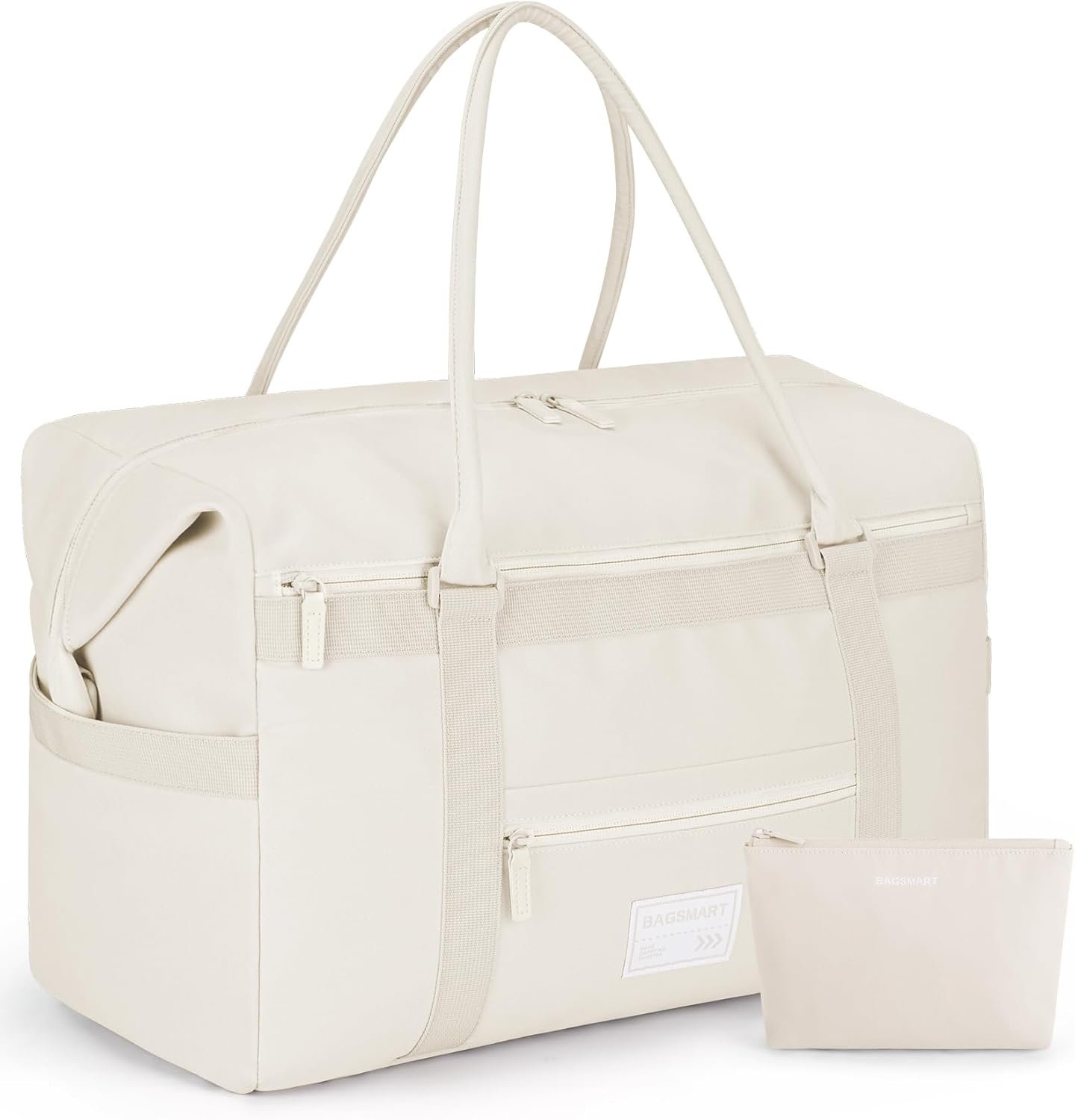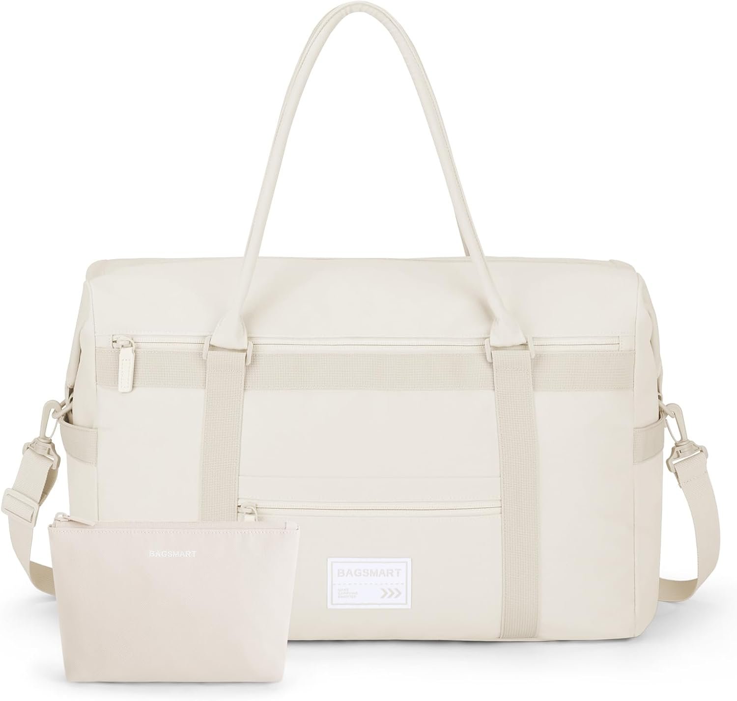 BAGSMART Travel Duffle Bag for Women, Multi Pockets Carry On Weekender Overnight Bag, Large Travel Tote for Personal Items, Beige