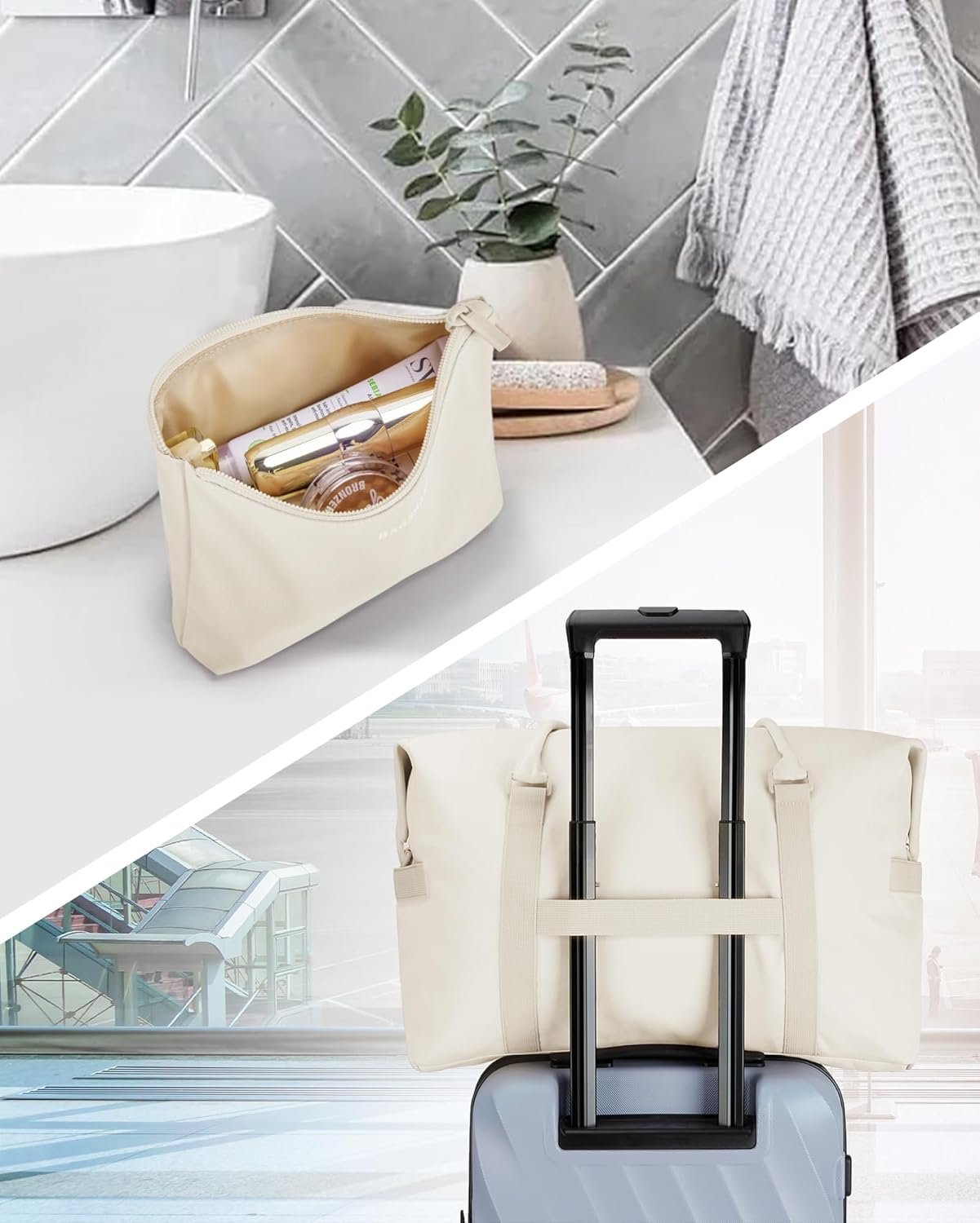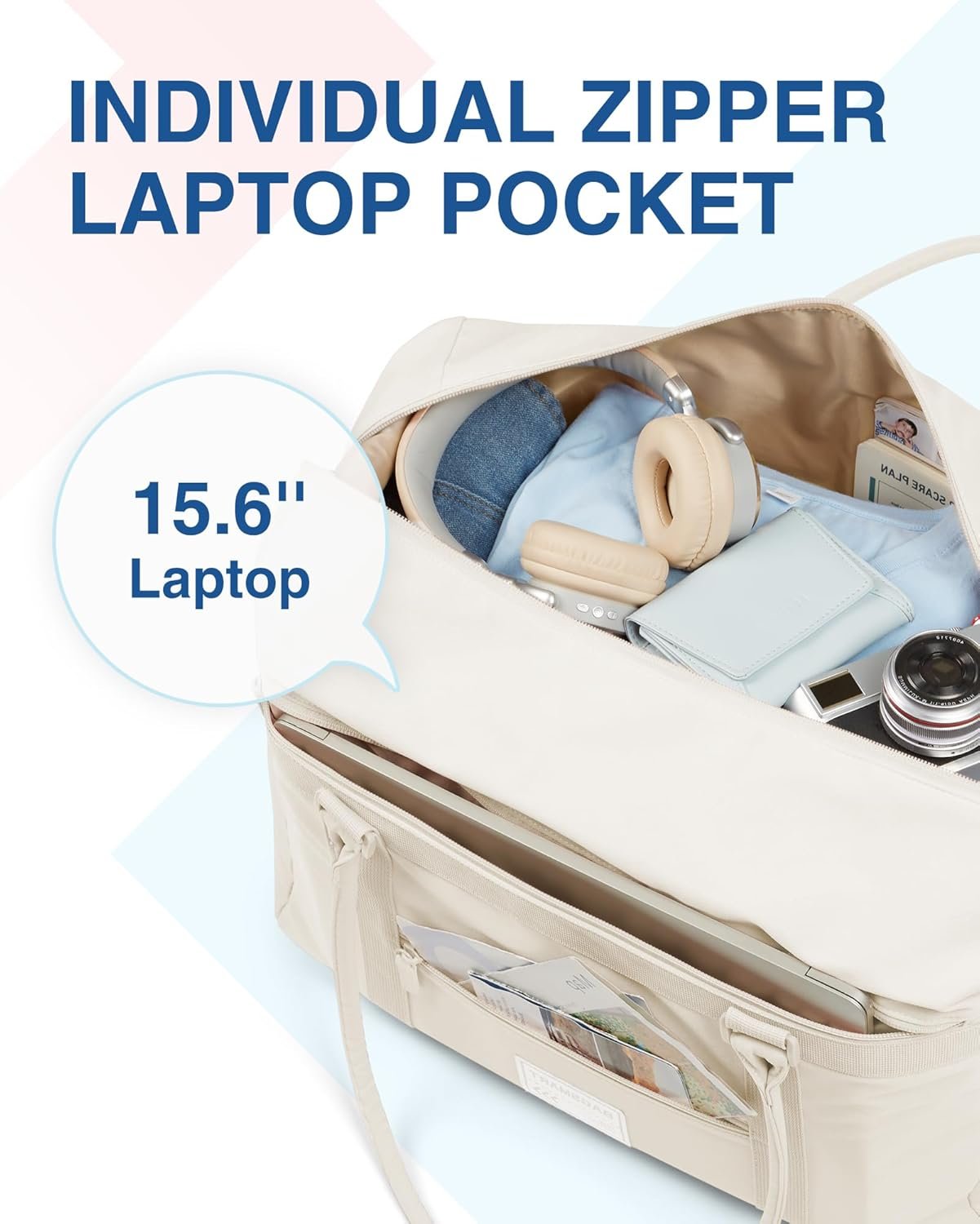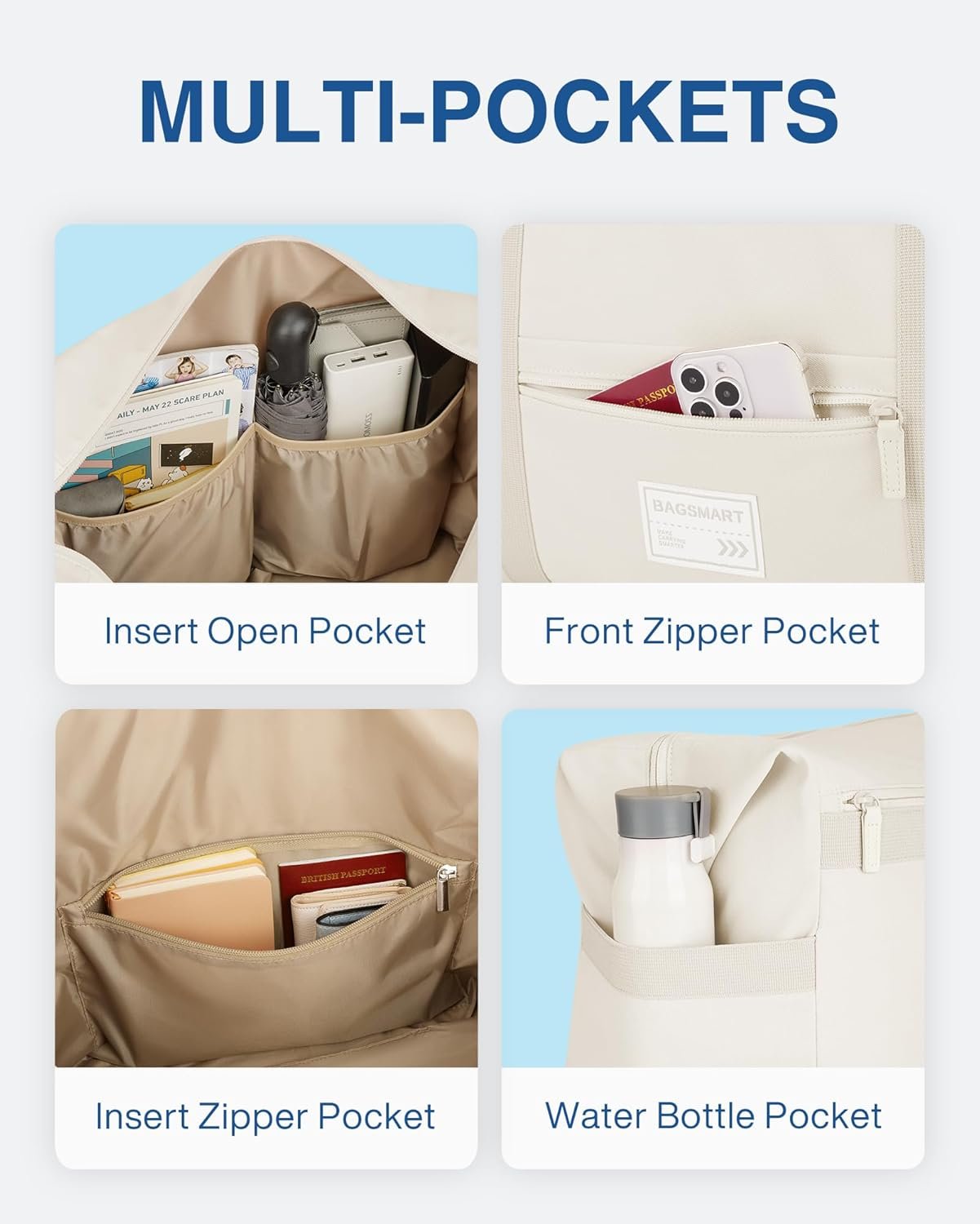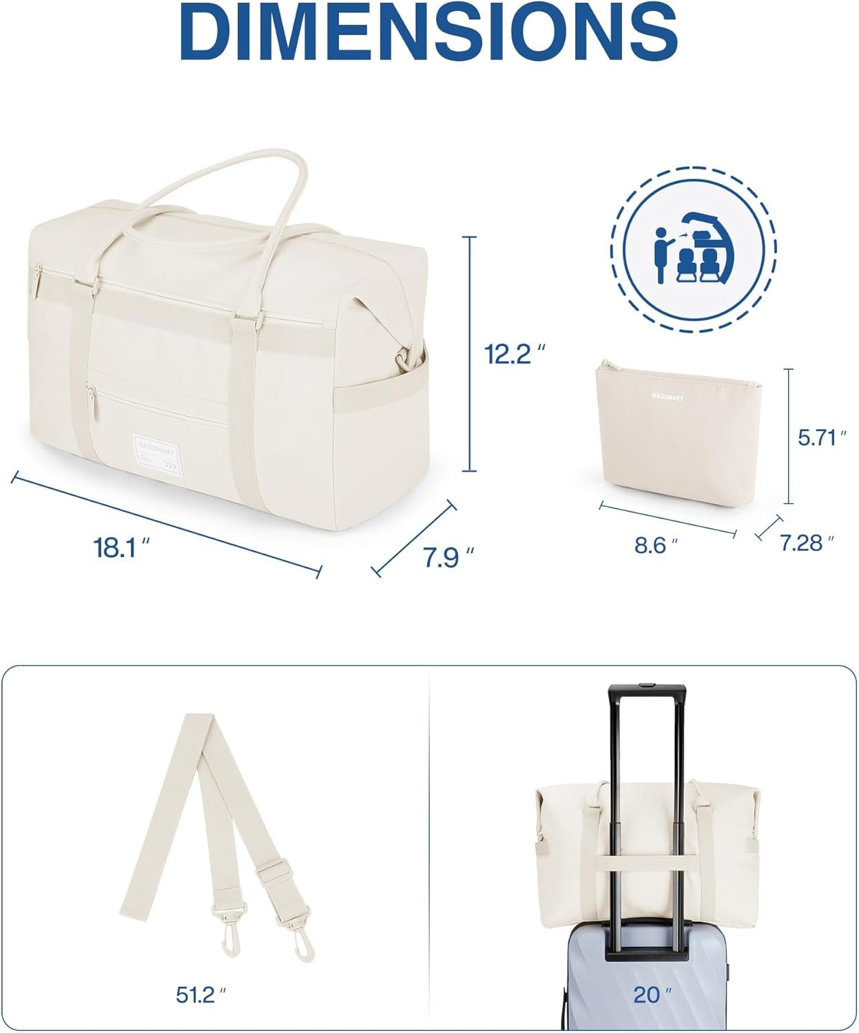 BAGSMART Travel Duffle Bag for Women, Multi Pockets Carry On Weekender Overnight Bag, Large Travel Tote for Personal Items, Beige