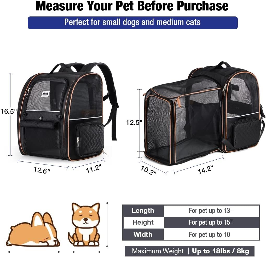 Lekebobor Large Cat Backpack Carrier Expandable Pet Carrier Backpack for Small Dogs Medium Cats Fit Up to 18 Lbs, Dog Backpack Carrier, Foldable Puppy Backpack Carrier for Travel,Quilted Black