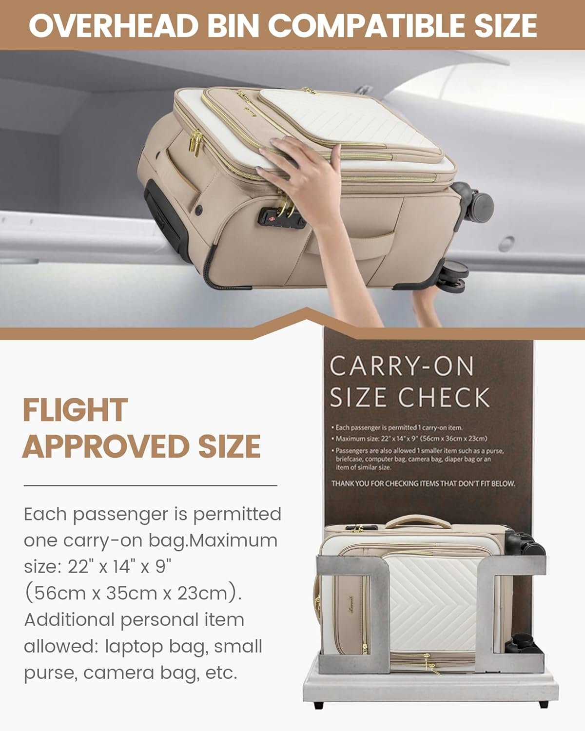 ăAirline Approved DimensionsăThis large suitcases with wheels measures 21.65 x 9 x 13.78 inches (including wheels), weighing 6.7 pounds, and is crafted to meet the size requirements of most major airlines, fitting comfortably in overhead bins. Ideal for stress-free travel, it meets check-in size restrictions for airlines such as American Airlines, Delta Airline, United Airline, Southwest Airline, Hawaiian Airline, and Alaska Airline, etc.