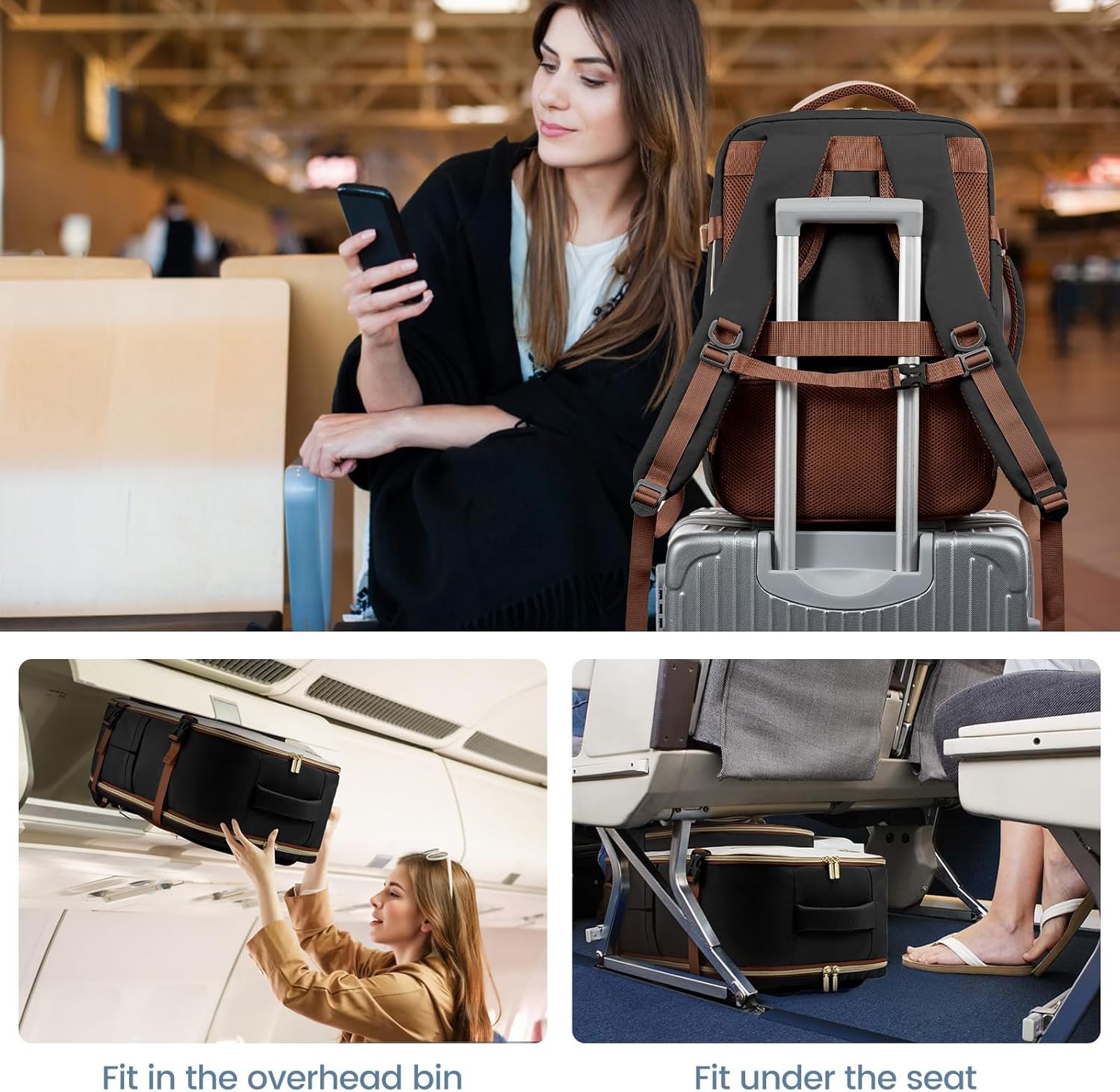 Airline Approved & Convenient: Our carry on backpack measures 17*12.5*9 inches, meeting the requirements of budget-friendly airlines like Spirit, Frontier, and JetBlue. It easily fits under the seat or in the overhead compartment, making it the perfect personal item for air travel.