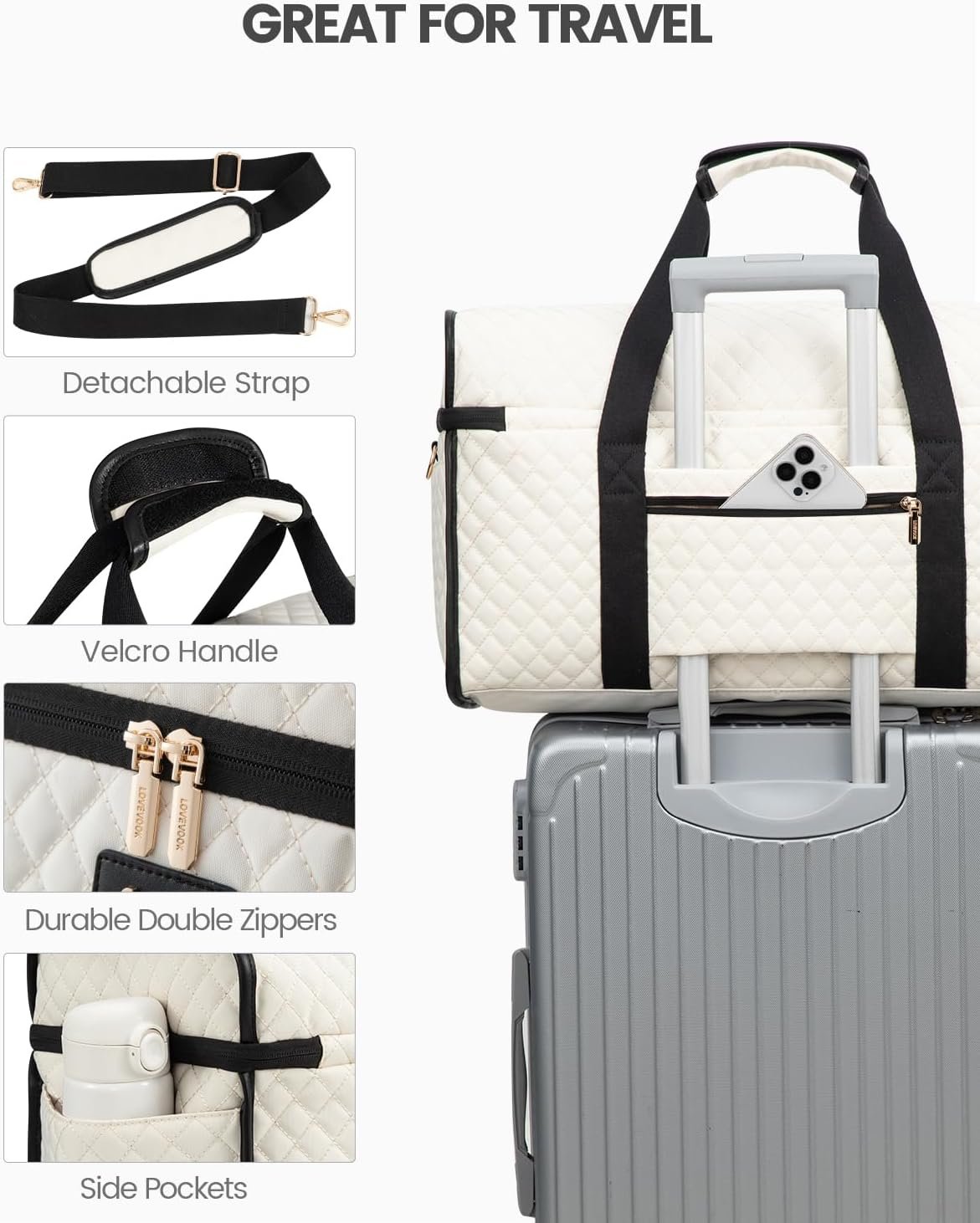 LOVEVOOK Travel Duffle Bag, Weekender Bags For Women, Carry On Duffel Bags For Airplanes, Overnight Bag With Toiletry Bag, Hospital Bag for Labor and Delivery, Yoga Gym Bag with Wet Pocket, 3Pcs Set