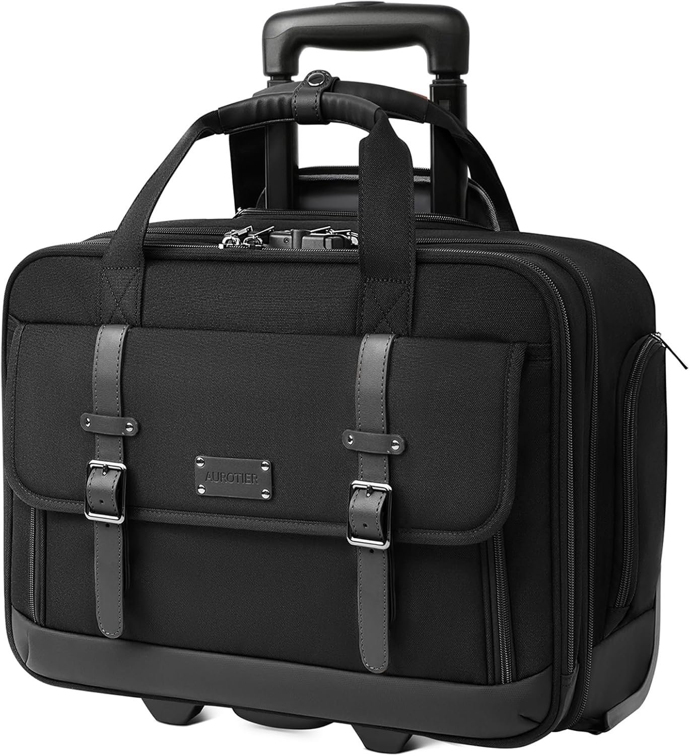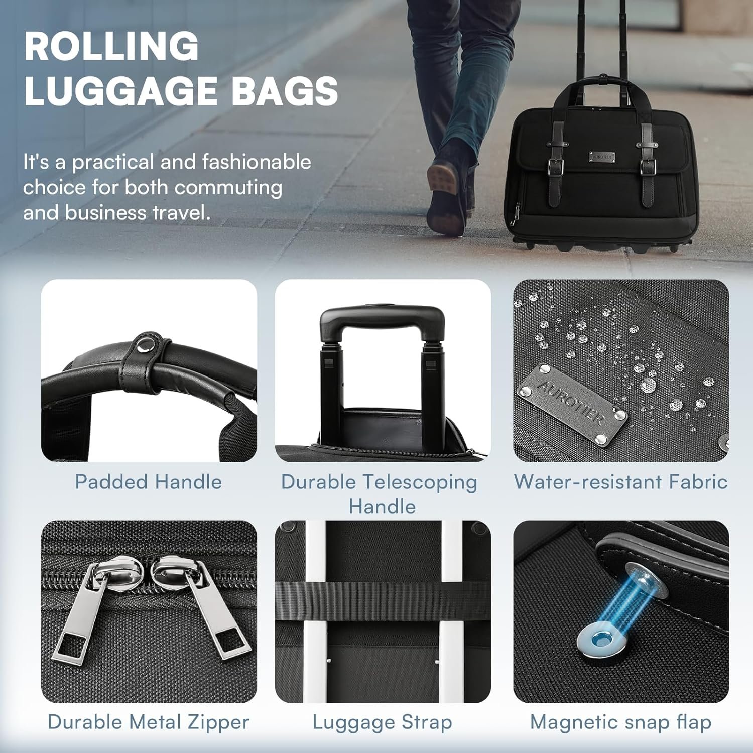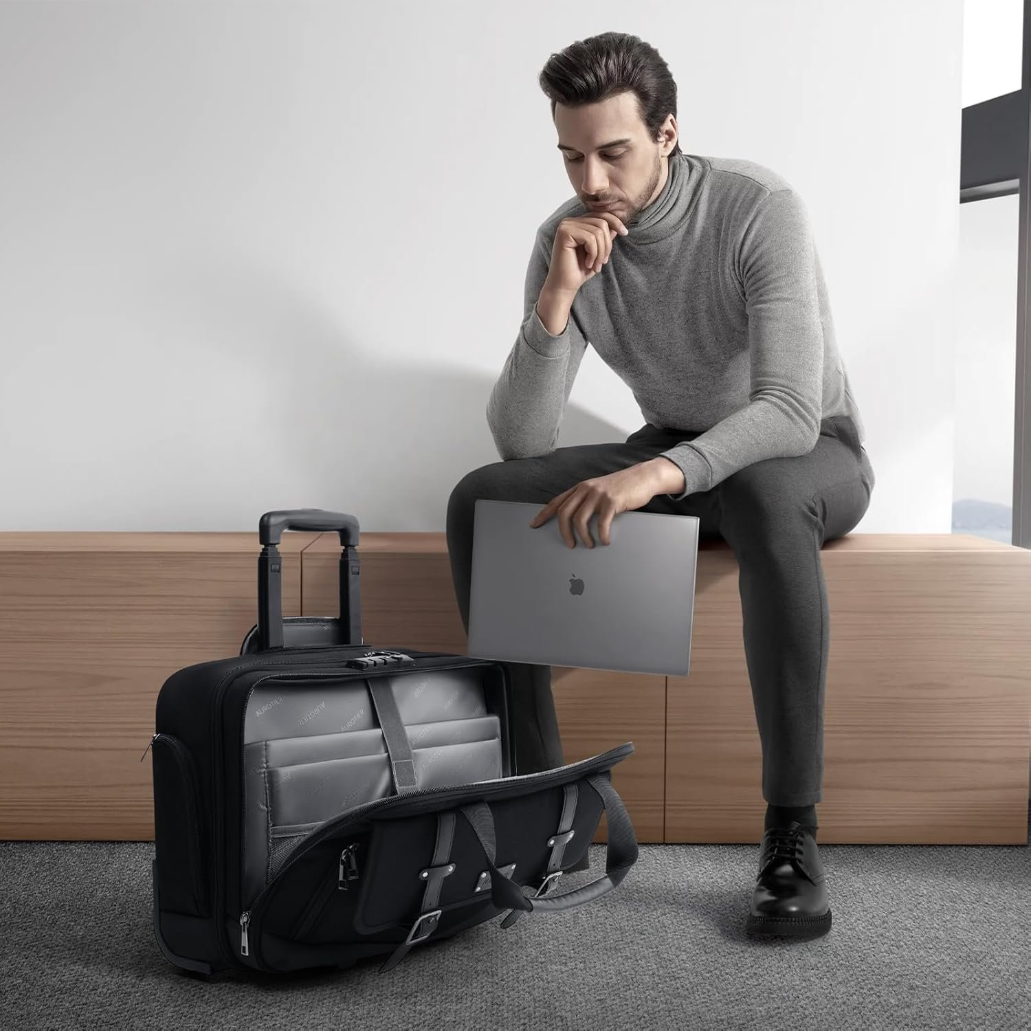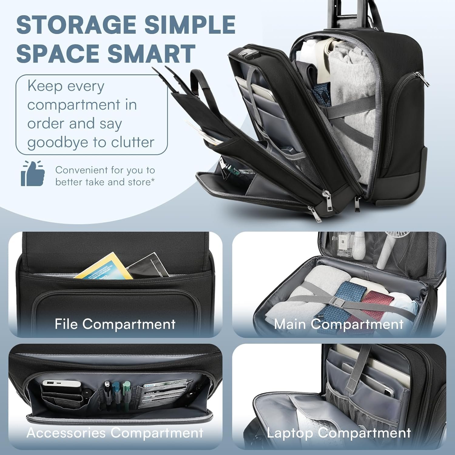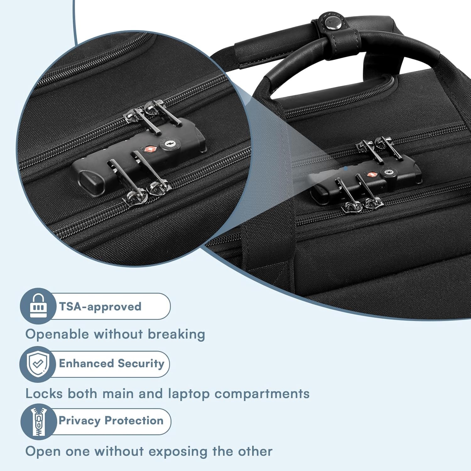 【Travel Friendly & Double-compartment Locking】This rolling briefcase features a TSA-friendly lock design, and both the main compartment and the computer compartment can be locked, greatly improving privacy and security. The size of this rolling laptop bag meets the requirements of most airlines and can be placed in the overhead bin or under the seat. Make traveling more convenient and easy! Perfect for those who often need to travel for business or short trips