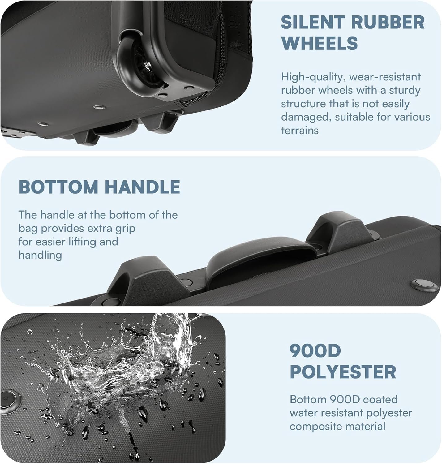 【Great Partner for College and Commuters】The rolling computer bag is made of high quality, wear-resistant silent rubber wheels. Meets the need for quietness in school or office areas. The carry handle is designed for easy use when walking up and down stairs. The rolling work bag is made of waterproof fabric on the outside as well as PU 900D coated waterproof polyester laminate on the bottom, which prevents rainwater from seeping in and works well in rainy days
