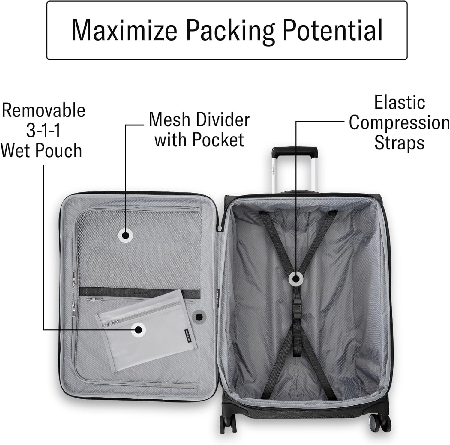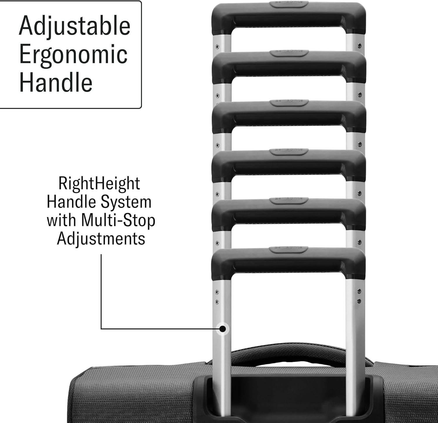 UpLIFT Design – RightHeight handle system with multi-stop adjustments allow you to extend the handle to a height that’s customized to you. Mesh-dual access pocket that’s also accessible from the exterior face panel pocket – gives quick on-the-go access to items packed away Seatbelt Webbing Cross Straps maximizes packing space by compressing your clothes. Removable 3-1-1 Wet Pouch keeps all your liquids safe from your clothing