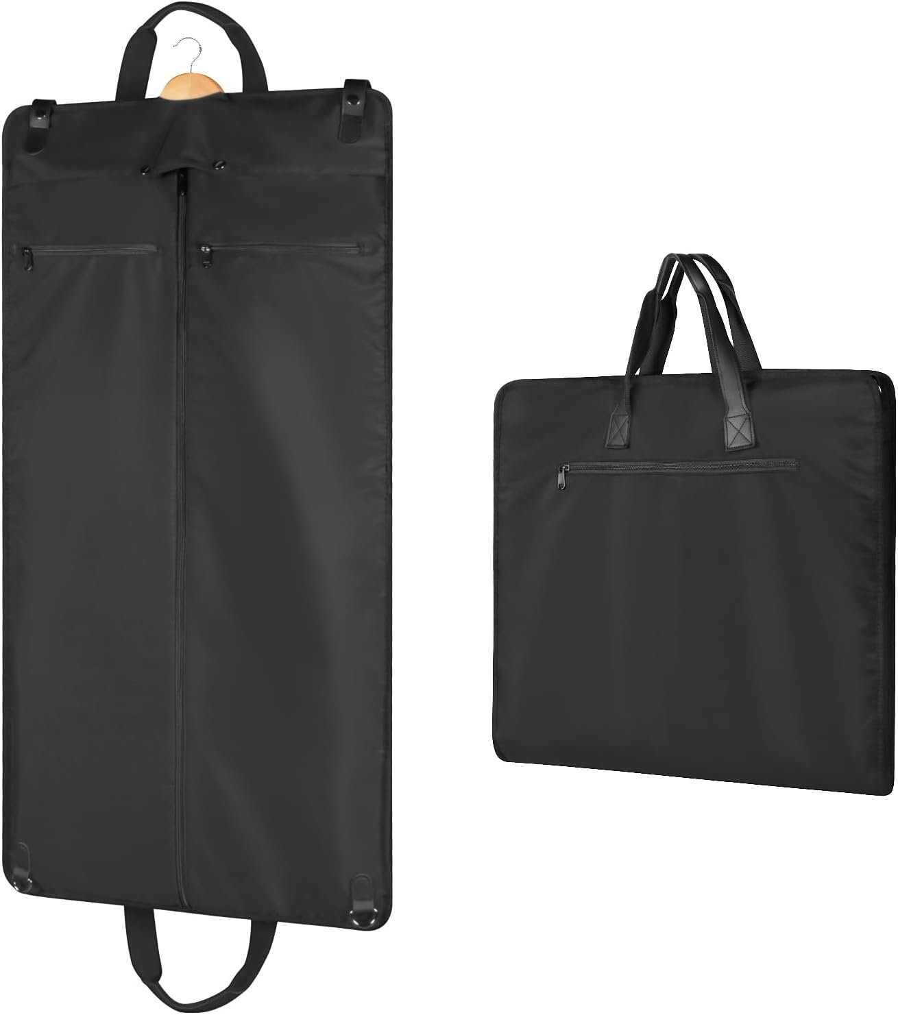 Univivi 43″Garment Bags for Travel Wrinkle Free Suit Bag for Men Women with Leather Buckle, Foldable Garment Bags for Hanging Clothes with 3 Zipper Pockets and 2 Carry Handles for Suit, Coats, Shirt