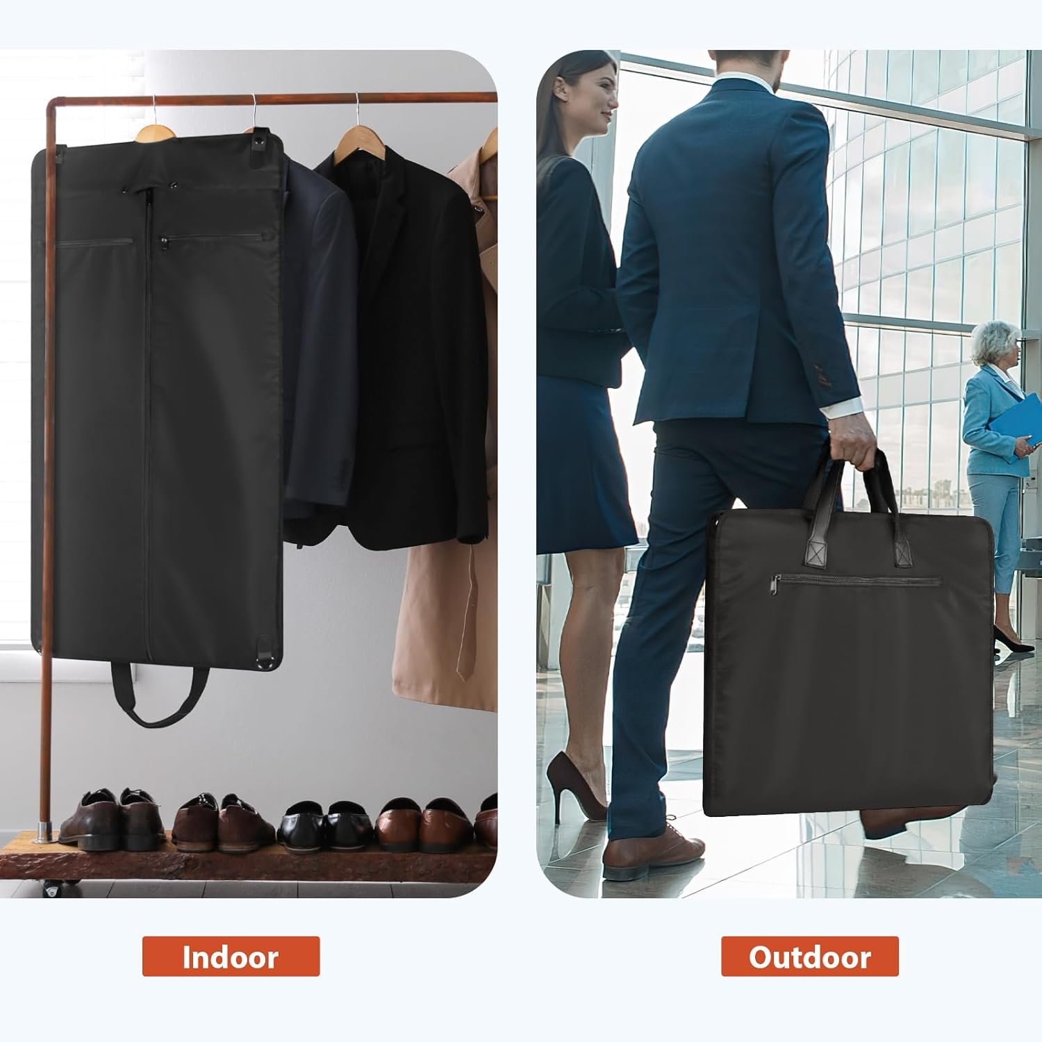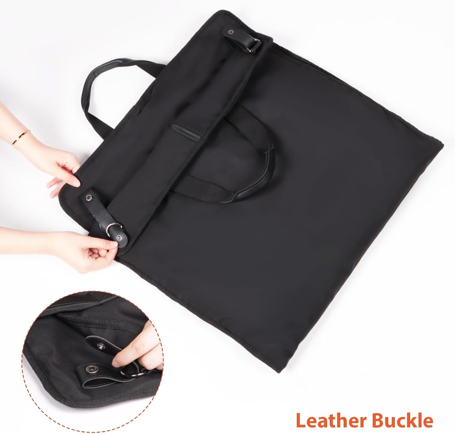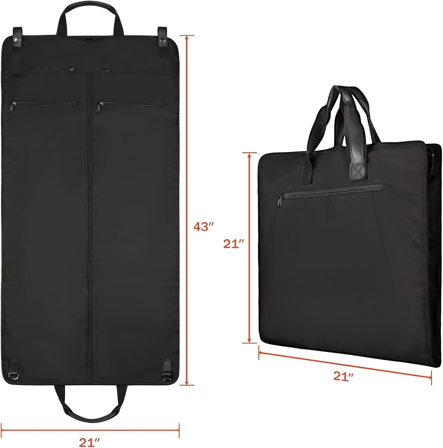 Foldable Travel Bag – This suit bag has 2 leather buckles that make it easy to fold the bag. Wide carry handles on top and bottom for easy attachment to rolling luggage for airport convenience. Its foldable design ensures that it compacts down efficiently, taking minimal storage space.