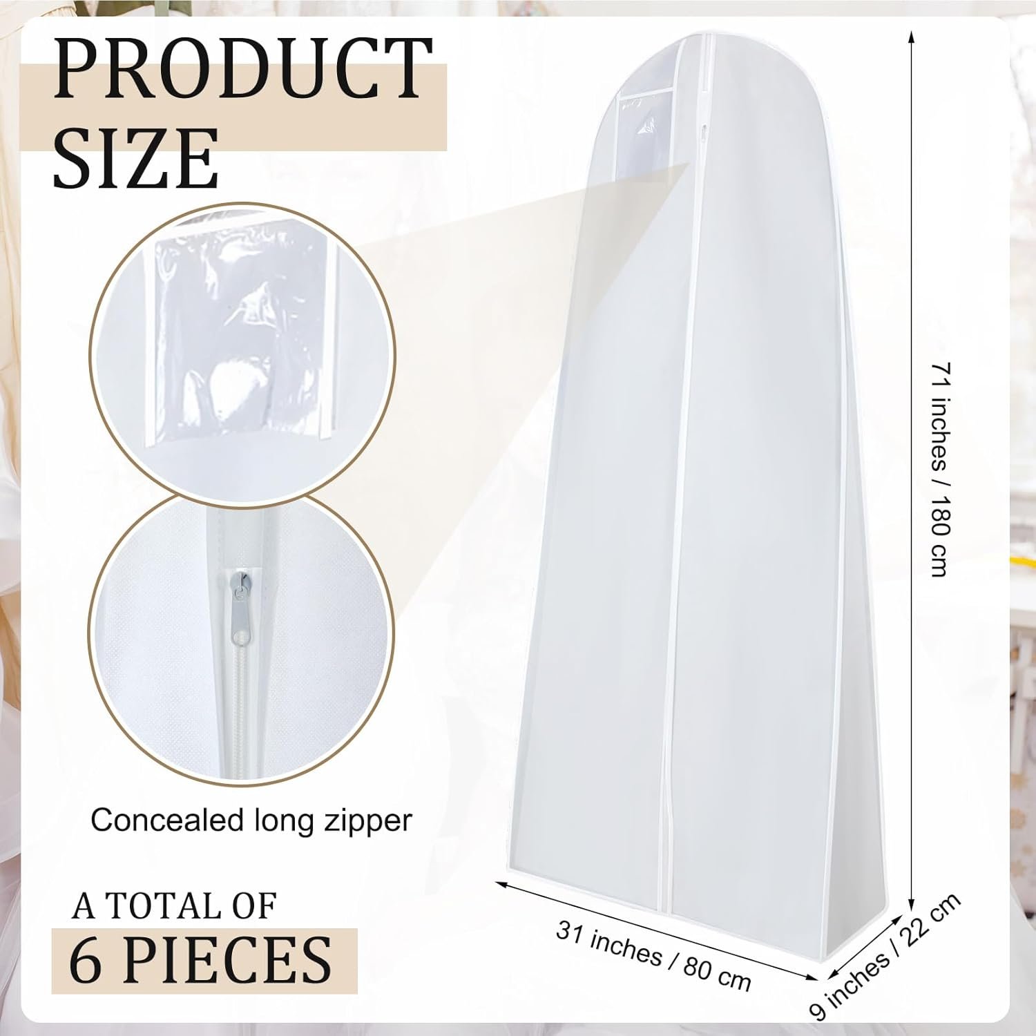 Windyun 6 Pack Wedding Dress Garment Bags 71” Dress Bags for Gowns Long with 9″ Gusseted for Travel Hanging Clothes Storage(White)